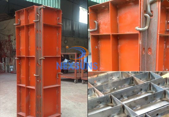 Coppha thép cột có cấu tạo nhỏ gọn, rất tiện trong quá trình di chuyển và thi công. Giá cả của loại này cũng rẻ hơn coppha Panel từ 30-50%. Thiết kế của chúng đa dạng phù hợp với từng hạng mục. Tuy nhiên được dùng nhiều nhất là coppha vuông và tròn.