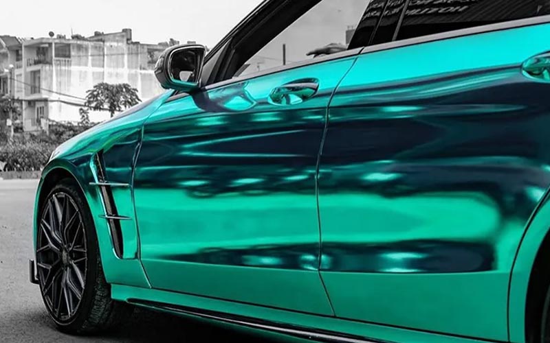 - Decal Chrome (độ bóng cao): Đây là loại decal có độ bóng giống với các chi tiết mạ chrome thường thấy trên xe. Decal Chrome trông như gương, có khả năng phản xạ ánh sáng cao, dễ gây chói khi gặp ánh sáng từ bên ngoài. Decal chrome không chỉ có một màu trắng kim loại thường thấy mà còn rất nhiều màu khác nhau.