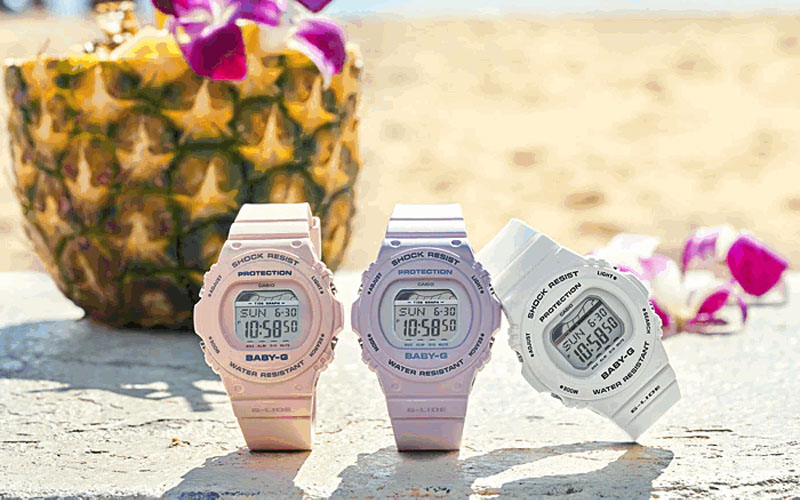 Nắm bắt được xu hướng hoài cổ, yêu thích phong cách retro của nhiều bạn trẻ trong những năm gần đây, Casio đã ra mắt dòng đồng hồ G-LIDE vỏ tròn mới – BLX-570-4. Chiếc đồng hồ Casio nữ giá rẻ điện tử này được lấy cảm hứng từ những bộ đồ lướt sóng thể thao của những năm 90. Tuy nhiên, màu sắc lại có phần tươi tắn, nữ tính và hiện đại hơn. Chất liệu nhựa của sản phẩm cũng cực kỳ thích hợp với các hoạt động bãi biển.